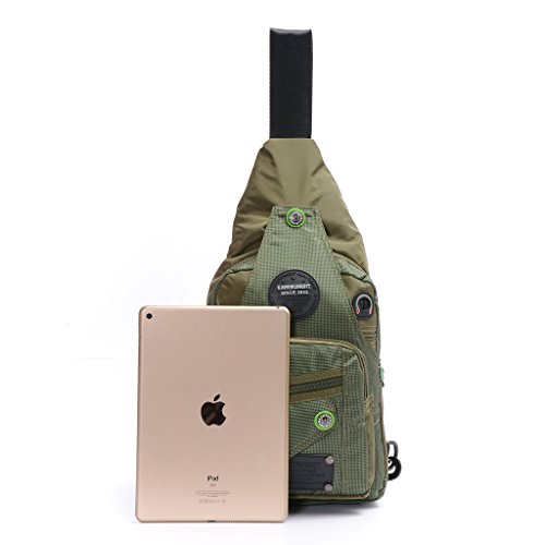 -. Feature : The sling bag is made from highly rip and water resistant nylon, provide strengthen and long-lasting performance with minimal weight. / Size:24cm*9cm*43cm (L*W*H) With a long adjustable shouder strap and three loops, which you can use the bag as a chest bag or messenger backpack on your right or left according to your preference. / Closure Type: zipper and buckle. The main zipper pocket is large enough yo hold your small digital camera, cellphone, first aid supplies ,journal,1 separate Ipad pouch, 1 small zipper pocket can hold your cash. A earphone hole connected the main bag, which looks very fashion and cute. / 4 pockets in the front, 1 pocket on the back, 1 small webbed pouch on the side of the bag. / 9 pockets in total, meet all your daily needs.Carry with you conveniently,can hold many goods,Good choice for school or travel.