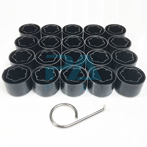 PA Black Wheel Lug Cap Covers for VW Part# 1K06011739B9 ~Set of 20 + Removal Tool (No "VOLKSWAGEN" logo)