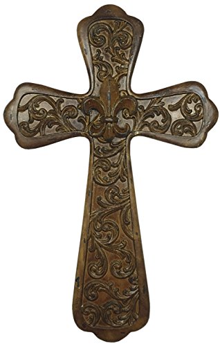 - Manual Inspirational Sandlewood Antiqued Woodtone Fleur De Lis Hanging Wall Cross to use as decorative plaque or wall sculpture, RMINFC