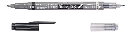 Tombow WS-TBS Brush Pen Fudenosuke, zwei weiche Spitzen, Twin Schreibfarben schwarz/grau