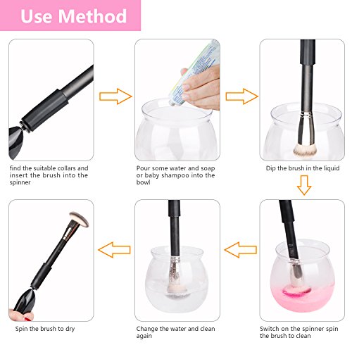 - ❥【Super Efficient】 - With high speed spinning, it can clean and dry your makeup brushes quickly and deeply for remove dirt, cosmetic, oil and bacteria.
