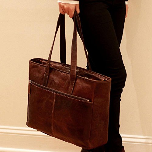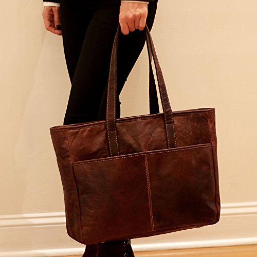 Product Description Jack Georges Voyager Leather Business Tote Bag HAND-STAINED VEGETABLE RE-TANNED BUFFALO LEATHER Carry your everyday essentials inside this large Tote from the Voyager Collection. The Bag is hand made from vegetable re-tanned buffalo leather that builds a rich, luxurious patina as it ages. Its main compartment features top zip closure for convenience and security. Inside you will find organizer pockets for your personal items, a designated pocket for your tablet, and plenty of space for files, folders, books, and documents. The bag features: Soft constructionPadded laptop compartmentOrganizer pockets for your cell phone, digital device, pens, and accessoriesZippered outside front pocketZippered inside pocketAvailable in black or brownDimensions: 15 1/2" x 121/4 " x 5" Metric: 39.4 x 31.1 x 12.7 cm 0