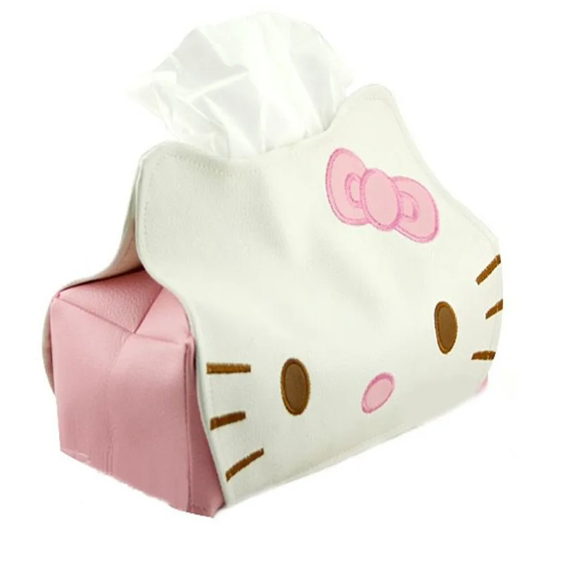 Cute Hello Kitty Tissue Box Cover , made of imported PU leather , exquisite workmanship, easy to manage . There are two bottom elastic band to fix the tissue box , the top opening for extracting tissue . Ultra super cute , at home , car, family members and guests were full of praise for the good stuff