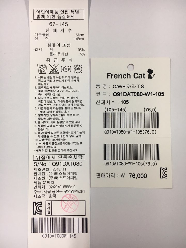 제조자 : 퍼스트어패럴