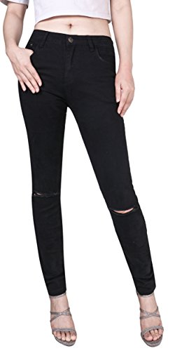 Women's Skinny Fit Fashion Ripped Hole Destoryed Black Jeans,Size:US 2=XS,US 4=S,US 6,US 8=M,US 10,US 12=L,US 14=XL,US 16,US 18=2XL,US 20=3XL.
