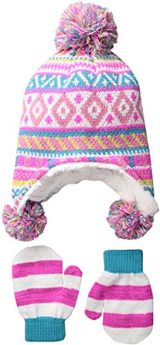 Product DescriptionAcrylic knit pop art jacquard hat and matching striped knit mittens0