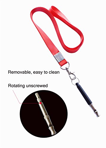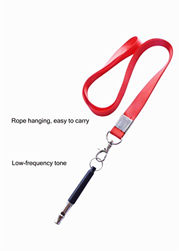 Specifications: Lanydard Strap color:Black and Red Size: Total length (including the first iron ring): 9cm(3.54inch) / flute length: 8CM(3.15inch), a single weight of about 15 grams, lanyard folded after the length of 45 cm, width 1.5 cm. It is one of the great tools to teach your dog obedience and enjoy watching him learn basic skills and even advanced movements as you whistle different commands to him It can also be trained cat, bird, chicken, sheep or even a mouse Package Include: 1 piece Dog Whistle with red Lanyard,1 piece Dog Whistle with black lanyard 0