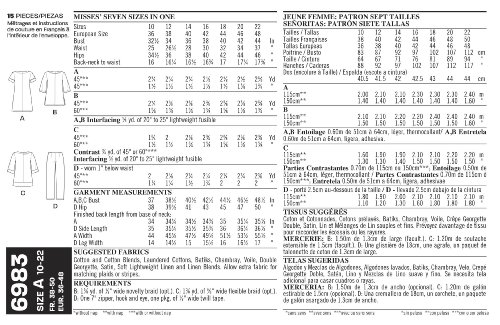 -. Feature : Misses' Separates in size A (10-12-14-16-18-20-22), New Look Pattern #6983 / Number of looks included: 4 / Designed in UK, Manufactured in USA / Instructions are written in English, Spanish, and French
