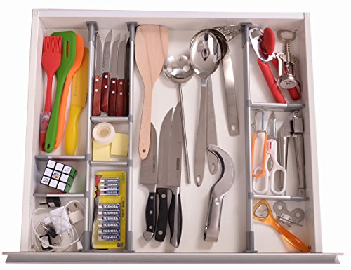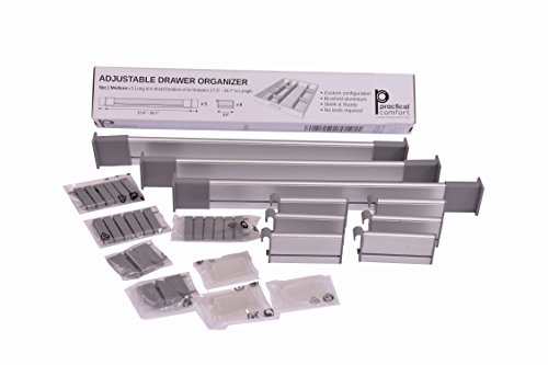 Adjustable Drawer Organizer, Customizable, Elegant Aluminum, for Clutter Free Kitchen, Junk Drawer, Office, Clinic (9 Dividers Set - Large | for Drawers 19.7"-22" long) by Practical Comfort