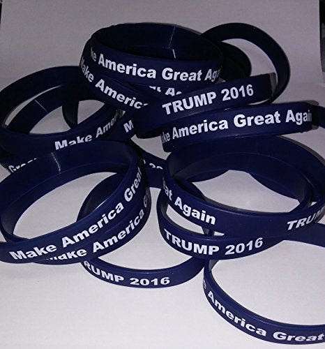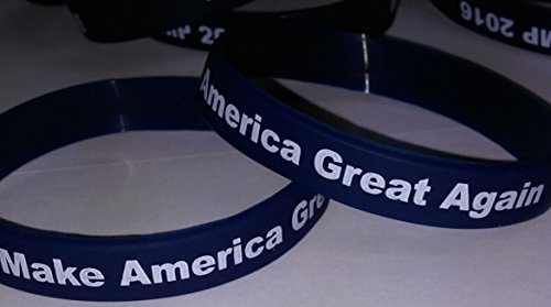 -. Feature : Trump 2016 / Make America Great Again / Silicone Adult Size Wristband / Blue silicone band with bold white lettering on both outer sides