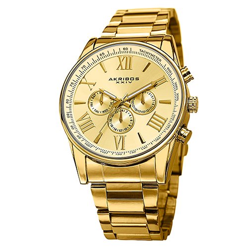 -. Title : Akribos XXIV Men's AK736YG Ultimate Swiss Multifunction Gold-tone Stainless Steel Bracelet Watch