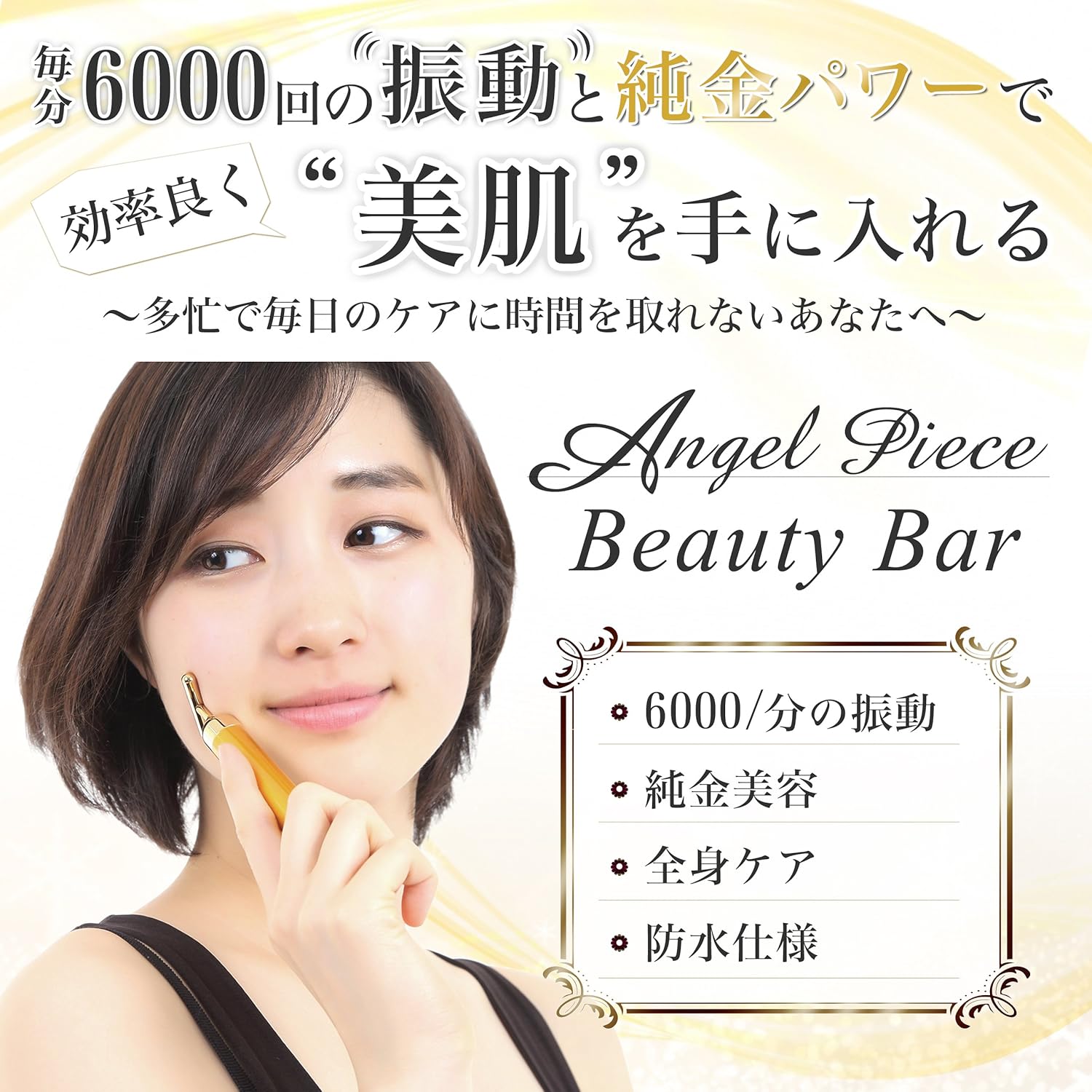 およそ6000回/分で振動する本体の刺激によりお肌に適度な刺激を与えます。