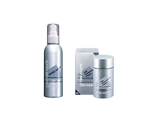 -. Feature : セット内容:スーパーミリオンヘアー 30g (グレー) 1個、スーパーミリオンヘアミスト 165ml 1本 / スーパーミリオンヘアー:スーパーミリオンヘアーは特殊加工された人工毛(約0.3~0.5mmに裁断された繊維)です。薄毛の部分に使用することにより静電気で髪に付着し、髪が増えたように見える商品です。 / スーパーミリオンヘアミスト:雨・風・スポーツ等の汗でも取れにくくする専用ミストです。 (保湿成分配合) / このセットで突然の雨や強い風、また激しい運動で汗をかいても落ちにくく、長時間自然なスタイルを保ちます。 / 男女問わずお使いいただけます。