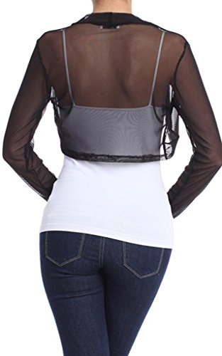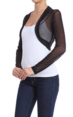 -. Binding : Apparel -. Brand : Ola Mari -. Department : womens -. Feature : Full Mesh Sheer Bolero / Long Sleeve Shrug / LENGTH: S ~14" M ~15" L ~15.5" 1XL ~16" ~2XL ~16.5" ~3XL ~17 (from shoulder to hem of the back) / PIT to PIT: S ~14" M ~14.5" L ~15" 1XL ~17" ~2XL ~17.5" 3XL ~18" (measured laid flat, without stretching) / 95% Nylon 5% Spandex (Made in USA) -. ProductGroup : Apparel -. ProductTypeName : SWEATER -. Title : Ola Mari Full Sheer Mesh Long Sleeve Bolero Shrug