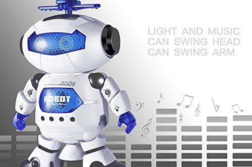 Features: Battery Operated Flashing,Sounding Material: Plastic 360 degree Rotation Dancing Electric Robot including Light & Music Dancing electric robot model toy. This robot can dance, sing and give out light from its antenna Turn on it, and then its antenna will give out light and rotate like a colorful circular. You can see a red circular on the ground When it is dancing, its hands will flash light and bob, and it legs will also dance regularly. There is foundation, which allow it sit on the ground and rotate, under its body Some music will play during dancing Must be a best gift for the kids and robot fans. Notice: It must be put on the flat ground and held before dancing Item Type: Dancing Robot Toy. Warning: Keep away from Kids 3yrs below and from fire. Material: Plastic. Age Range: 3yrs old+. Gender: Unisex. Size: 245 x 190 x 95 mm / 9.6 x 7.5 x 3.7 inch . Battery: 3" AA" batteries (Not included) Package content: 1 x RobotFeature