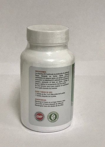 -. Binding : Misc. -. Brand : Interfarma - Veterinary -. EAN : 0714193602193 -. Feature : Helps to stimulates the production of red blood cells. / Increased amounts of oxygen to both blood and muscles. / Help to stimulates brain activity. / Each bottle contains 100 tablets. / Made in USA. -. Label : Interfarma -. Manufacturer : Interfarma -. PackageQuantity : 1 -. ProductGroup : Pet Products -. ProductTypeName : PET_SUPPLIES -. Publisher : Interfarma -. Studio : Interfarma -. Title : B-12 and B-15 for Roosters - 100 Tablets -. UPC : 714193602193