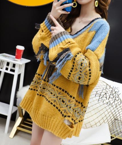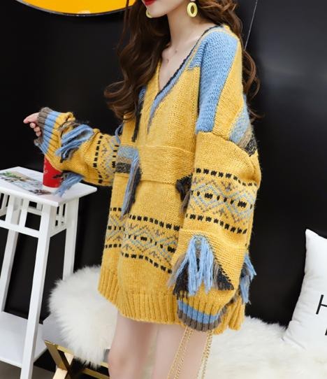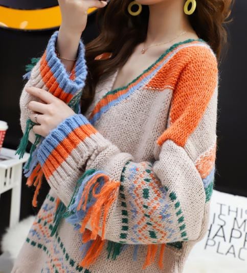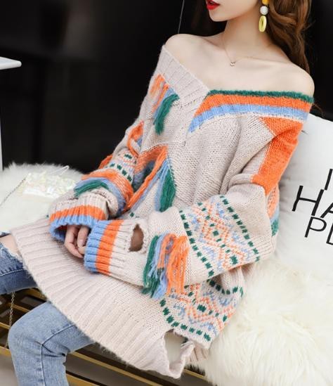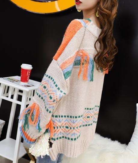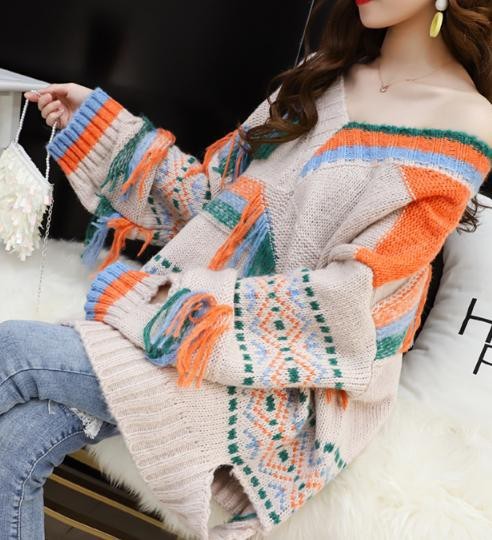 民族柄ボーダーが目を惹くデザインのニットカーディガン。