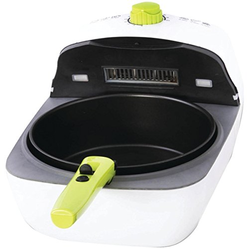 GFM01 Features: -Convection 360 air flow for even cooking with no turning. -Transparent cover. -Built-in timer for easy and convenient meals. -Results in 80% less fat. Product Type: -Oil-less fryer. Primary Material: -Plastic. Fry Basket Included: -Yes. Dimensions: Overall Height - Top to Bottom: -11". Overall Width - Side to Side: -12.1". Overall Depth - Front to Back: -17". Overall Product Weight: -11 lbs.Feature