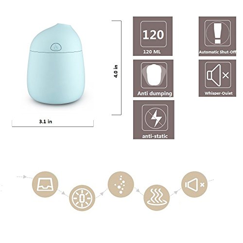 Novth Mini Humidifiers with Whisper-Quiet Operation, Automatic Shut-Off, 120ml Nano Mist Humidifier for Bedroom Baby room Home Office Car Study Yoga Spa,Easy to Clean (blue)