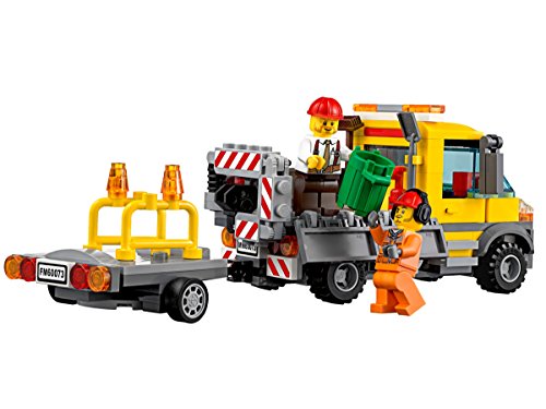 -. Feature : Enthält 2 Minifiguren mit passendem Zubehör: Einen Fahrer und einen Bauarbeiter. / Ebenfalls enthalten: Ein Lkw mit Kran, ein Anhänger und mobiles Baustellenklo. / Zubehör: Becher, Schaufel, Presslufthammer, Besen, Abfalleimer, Toilettenpapier und 2 Barrieren / Bediene den leistungsstarken Kran. / Hiev das mobile Baustellenklo auf den Anhänger.