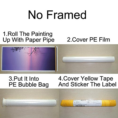 They have no frame, only 4 canvas,They need you to buy the frame and install them, please note !! They are made by machine printing, not hand-painted,They are rolled up and shipped, and you will receive a cylindrical item, not a carton,They are very beautiful, suitable for hanging in every place in the home, you can also give your friends! This product is no frame, if you want to buy a decorative painting frame, please click "MuyaArt"Feature