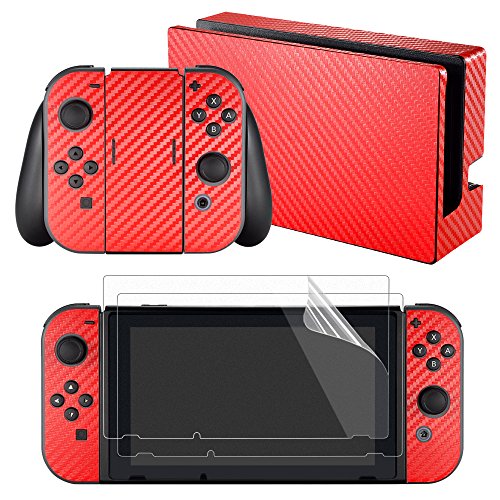 -. Title : eXtremeRate® Red Carbon Fiber Decals Stickers Full Set Faceplate Skins +2Pcs Screen Protector for Nintendo Switch Console & Joy-con Controller & Dock Protection Kit