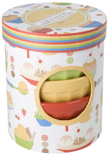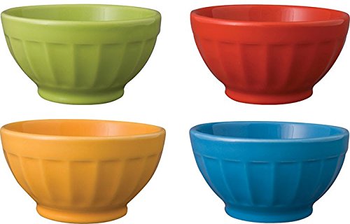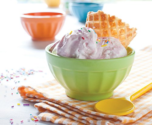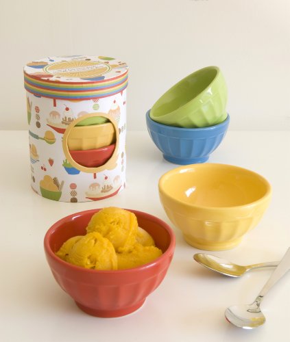 For over 45-year now designs has created fashionable, fun, and functional kitchen textiles, table linens, gifts and decorative accessories for the home. Whether it's kitchen basics, fashion- forward designs or gifts for any season, now designs' quality and workmanship is unsurpassed. Add a dash of color to your table with now designs' fresh, fluted ice cream bowls. Set includes four 5-Ounce stoneware bowls, one each of colors: green, blue, red and yellow. Dishwasher and microwave safe.Feature
