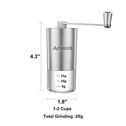 ★ Time saving - No need to go to coffee grinding shop.it is perfect for 1-2 people/cups(20g in total) of coffee,Work great for different brewing method,such as Espresso,French Coffee,Pour-over and so on