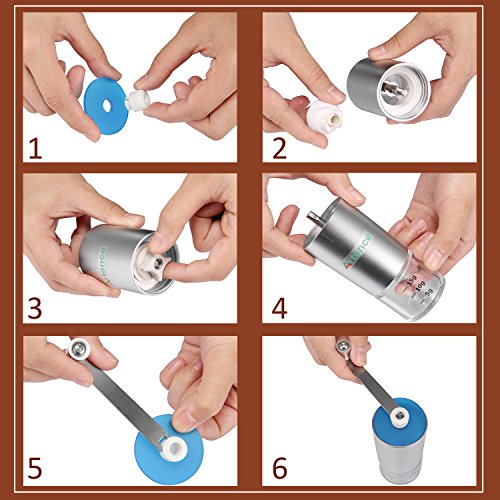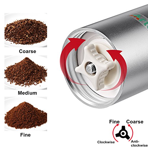 ★ Grinding Adjustment - Set it from coarseness to fineness,just adjust screw nut to the desired grinding.Turn the screw nut to right(clockwise),finish a finer ground coffee.Turn it to left(counterclockwise),having a coarser ground coffee