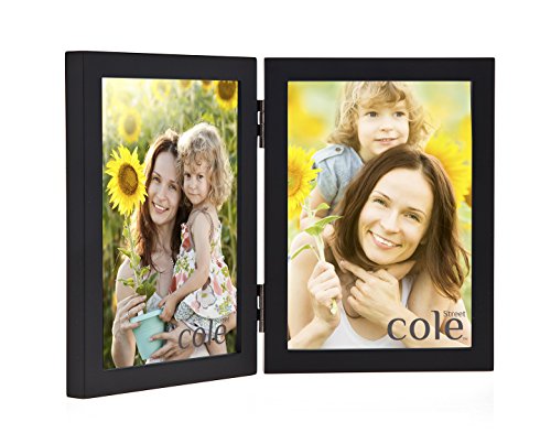 -. Title : Philip Whitney Black Wooden Hinged Double 5x7 Picture Frame
