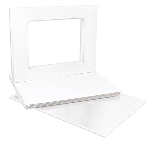Golden State Art Acid free, Pack of 10 11x14 White Picture Mats Mattes with White Core Bevel Cut for 8x10 Photo + Backing + Bags