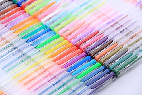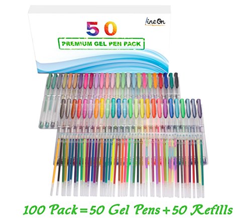 Lineon gel pens set contains 50 unique colors gel pen plus 50 refills are ideal for adult coloring books.