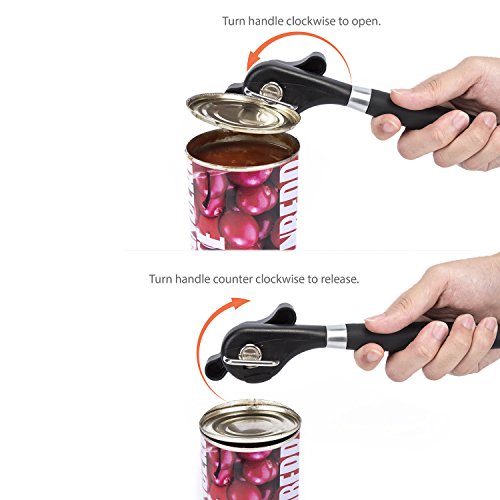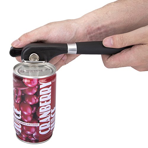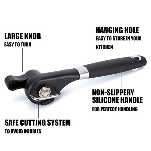 Wowfashions Can Opener Manual Smooth Edge for Seniors Safe Cut Heavy Duty Stainless Open Cans Bottles Jar Tins Gripper with Large Knob and Non-Slippery Silicone Handle for Home Kitchen Party Black