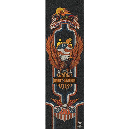 -. Feature : One (1) sheet of Premium Darkstar Skateboards Harley Eagle Griptape from Darkstar Skateboards / Sheet Size: 9" x 33" / Formulated with long-lasting glue to provide the best grip / Perfect, fine-grit texture and smooth cutting / Be sure to measure your board to make sure this piece will fit your ride!