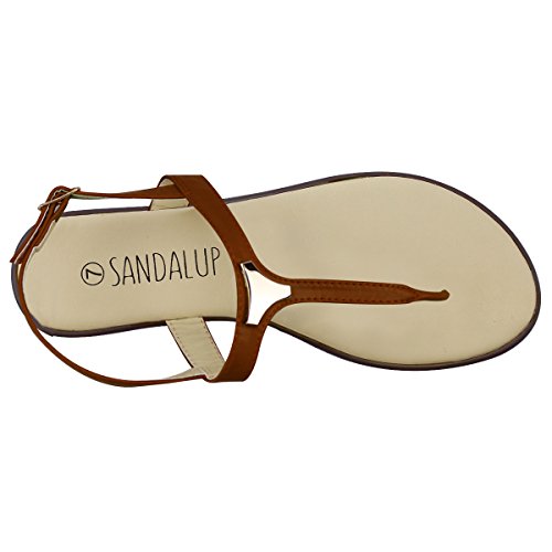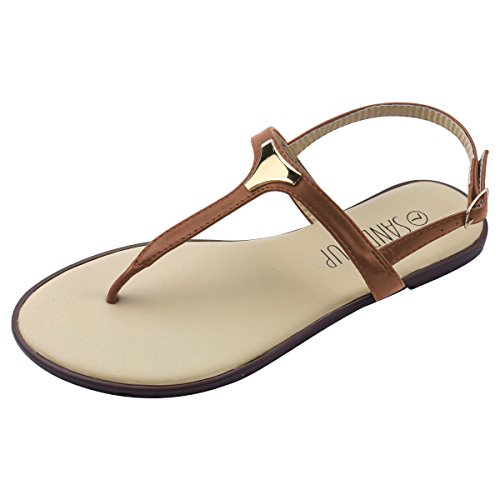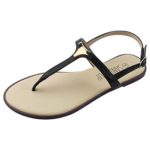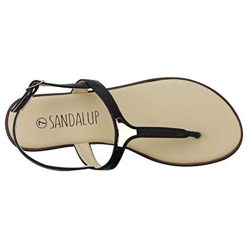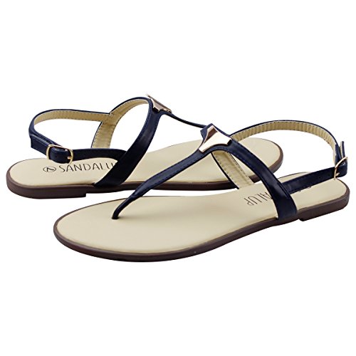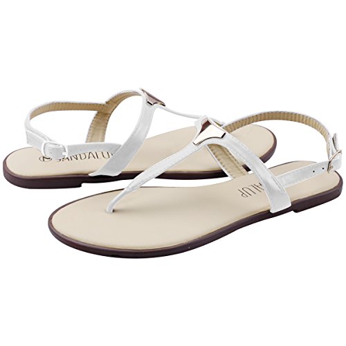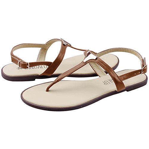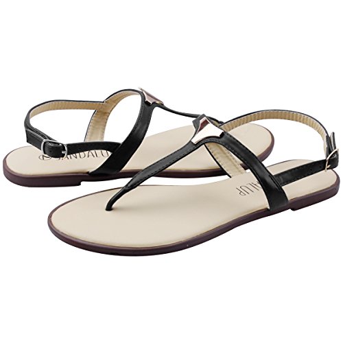 SANDALUP Women’ s Triangle Metal Buckle Gladiator Thong Flat Sandals