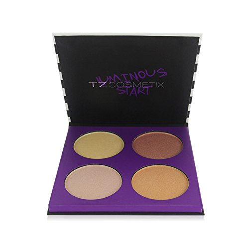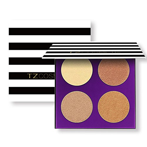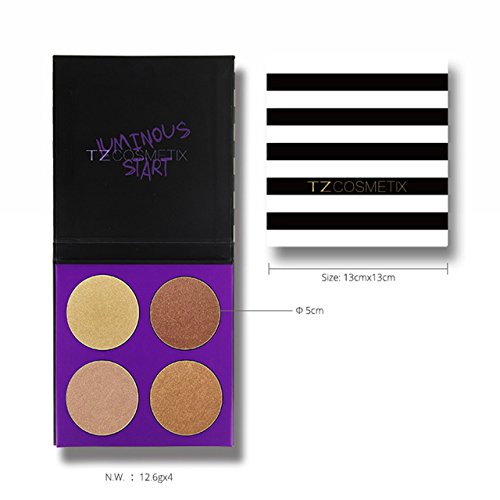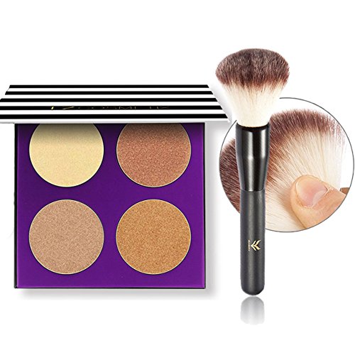 CCbeauty 4 Color Highlighter Makeup Pallete with Powder Brush Shimmer Bronzers Contour Shadow Illuminating Powder Cosmetic Kit,Pearl