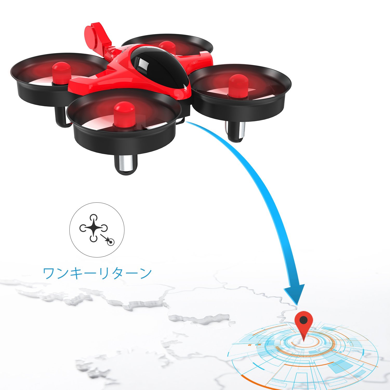 There is a position identification system, you can remember the coordinates of the moment of takeoff, press the button of one key return, and the drones can return without delay