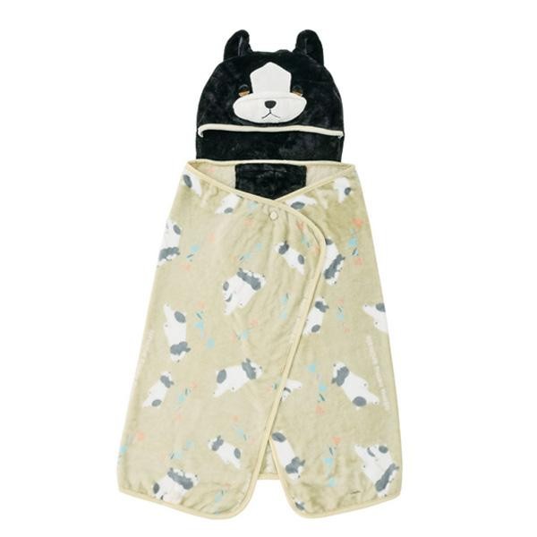 | 滑らかな肌触りのフランネル生地にねむねむたちをプリントデザインしたブランケット。シンプルにひざ掛けとして、お家でほっこりしたいときやアウトドアなど寒いときにはボタンを留めてボレロやポンチョや腰巻として、フード部分にブランケットを収納するとフェイスクッションにもなります。使う場所や気分などによって色々使えるので1枚あると便利です。薄いのに暖かく、お洗濯してもすぐ乾くのがうれしいポイントです。 |
