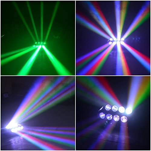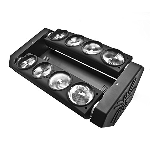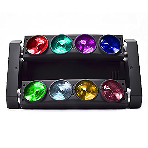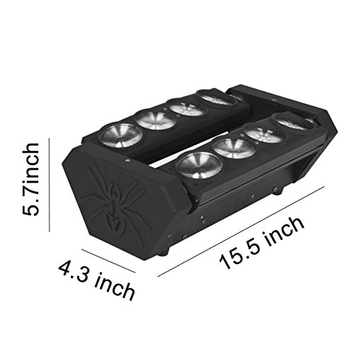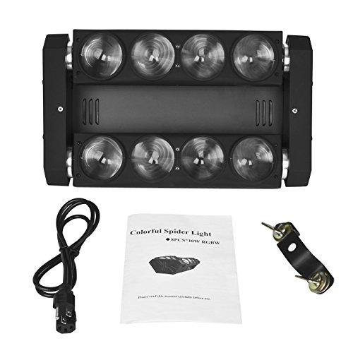 Studio : Eyourlife Publisher : Eyourlife Binding : Electronics Product Description Eyourlife LED Stage Lighting 8x10w Par LED Spider Moving Head Light RGBW DMX 512 Stage Disco Lighting Specification: 1.Voltage:AC110-240V 50/60Hz 2.Light Source:8x10w 4 in 1 RGBW 3.Power consumption:120W 4.Beam angle:4.5° 5.Control modes:DMX512,Master-salve,Auto movment,Sound control 6.Tilt movement:145° 7.Dimmer:0-100% smooth dimming 8.Strobe:Variable strobe speeds Features: 1. Many kinds of Channel DMX512 optional 2.Individual control of red, green, blue and white LED 3.Strobe effect with 18 flashes per second and pulse effect 4.RGBW, macros, run/strobe speed, automatic/sound, dimmer 5.Static color and RGBW color mixing with or without DMX controller 6.Color gradual change/color jump change/strobe, running speed adjustment 7. Dight Dightal LED Display Very low power consumption 8.With fan cooler 9.Rich color great for Club, Dj show, Home party, Ballroom, Bands, Show bar etc Package included: 1 x Led Light 1 x User Manual 1x Power Plug 1 x Stand