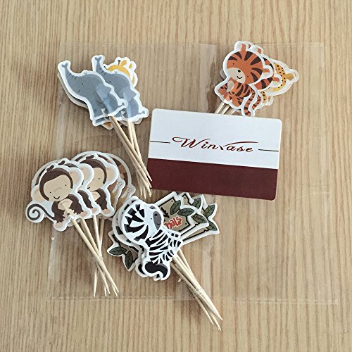Winrase® Pack of 24 Cute Kids Party Decoration Paper Cupcake Toppers (Wild Animals)