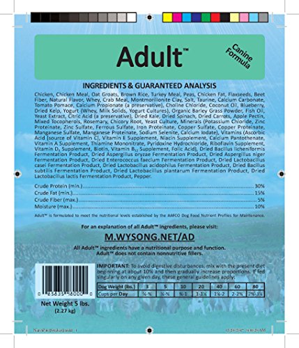 原材料:チキン、チキンミール、玄米、ひきわりオーツ麦、ターキーミール、えんどう豆、鶏脂、亜麻仁、ドライプレーンビートパルプ、卵、ナチュラルフレーバー、モンモリロナイトクレイ、カニミール、乳清、塩、炭酸カルシウム、トマトポマス、カルシウム・プロピオン酸塩、塩化コリン、ココナッツオイル、オーガニック大麦若葉、ブルーベリー、乾燥ケルプ、ヨーグルト(乳清、乳固形分、ヨーグルト培養物)、クエン酸、アップルペクチン、フィッシュオイル、イーストエキス、酸化防止剤(ミックストコフェロール、ローズマリーエキス)、チコリ根、, ヘミセルロースエキス、イーストカルチャー、乾燥にんじん、乾燥セロリ、乾燥パセリ、乾燥レタス、乾燥クレソン、乾燥ほうれん草、ミネラル類(塩化カリウム、キレート亜鉛、硫酸亜鉛、硫酸鉄、キレート鉄、硫酸銅、 キレート銅、硫酸マンガン、キレートマンガン、亜セレン酸ナトリウム、ヨウ素酸カルシウム)、ビタミン類(アスコルビン酸/ビタミンC、ビタミンE、ナイアシン、パントテン酸カルシウム、ビタミンA、チアミン硝酸塩、塩酸ピリドキシン、, リボフラビン、ビタミンD3、ビオチン、ビタミンB12、葉酸)、プロバイオティクス類(乾燥バチルス‐リケニフォルミス発酵物、乾燥アスペルギルス‐オリーゼ発酵物、乾燥アスぺルギルスニガー発酵物、乾燥エンテロコッカス‐フェシウム発酵物、乾燥ラクトバチルスカゼイ発酵物、ラクトバチルス・アシドフィルス発酵物、乾燥バシラス・サブティリス発酵物、乾燥ラクトバチラス‐プランタルム発酵物、ラクトバチルス・ラクティス発酵物)、ペッパー