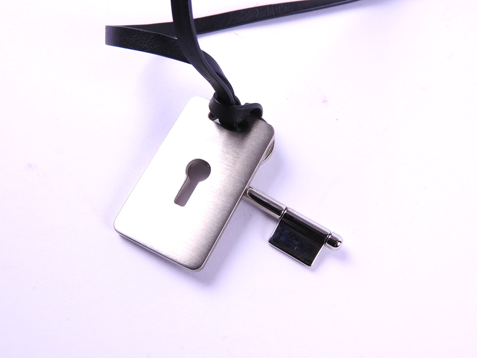 Leather Choker: Barely used feeling. Slightly curled and twisted. Plate: Barely used feeling. Tiny scratches and stains. Key: Barely used feeling. Tiny scratches and stains. |