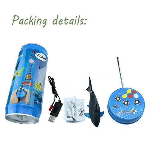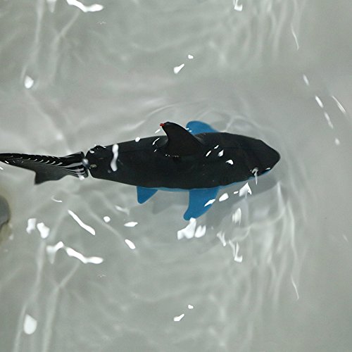 -. Feature : The shark could swim freely in water such as backyard pool, pond, fish tank, river, great fun for the kids / Real-like swimming actions with its tails and fins, wagging its tails just like a real shark. surP.R.Ising and interesting / Shark can floating in the water and swim forward, turn right and left / Comes with Waterproof and Anti-wrestling Function, Reliable Use,With built-in Battery, Easy for Charging via usb port / Charging Time: 5-8 Minutes; Remote Control Distance: 2-5 m