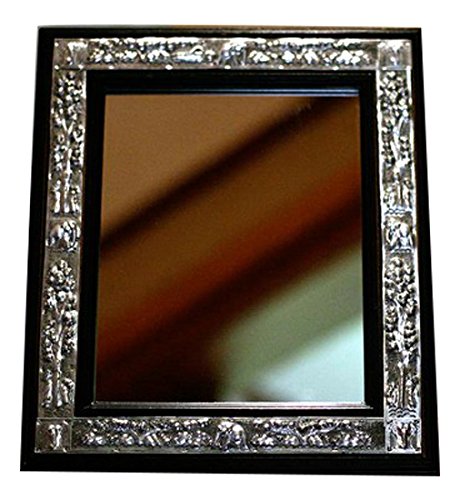 NOVICA Repousse Nickel and Wood Wall Mounted Mirror, Metallic 'Young Elephants'