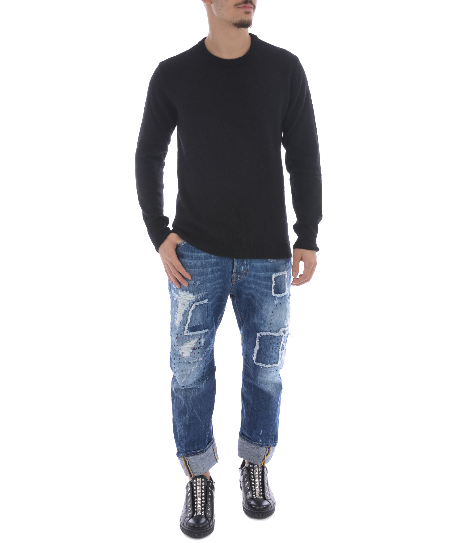 Maglia AMI Alexandre Mattiussi in misto lana Nero. Girocollo a costine. Manica lunga. Polsi e fondo a costine. Misura in foto M 35% baby lama, 30% poliammide, 25% alpaca, 10% lana