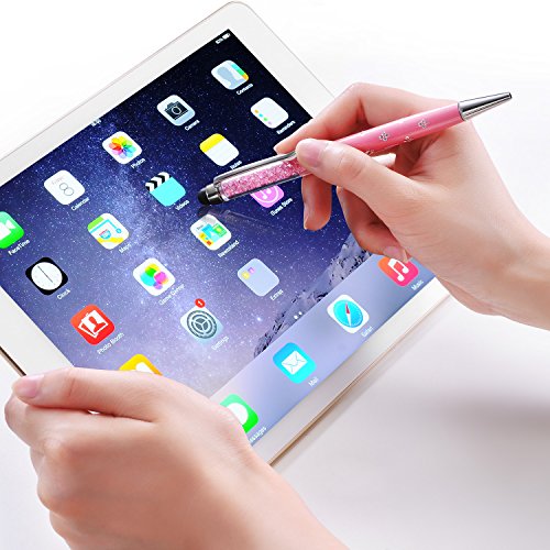 - Feature : Dual-function ballpoint pen and capacitive stylus pen,more practical and useful. / Compatible with all capacitive touch screen devices,durable soft rubber tip protects your screen / Ballpoint pen(black ink)writes smoothly,with a clip designed ,easy to carry around / Sparkling crystals filled in upper half chamber,exquisite four-petal flowers carved in bottom half the stylus holding,elegant and trendy / Fashionable colors for you to change with weather or cloths