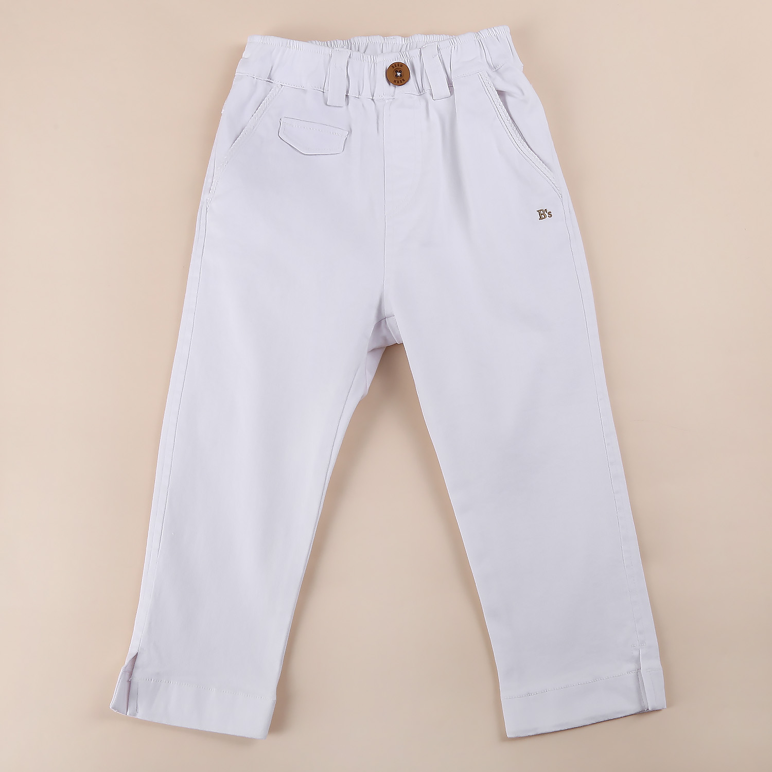 화이트 컬러의 8부 면 팬츠 아이템입니다.