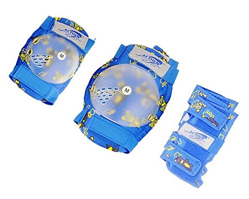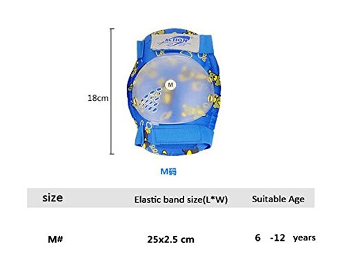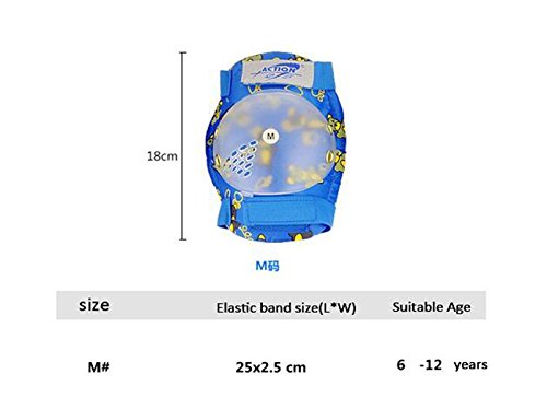 -. Feature : Suitable for skateboarding,roller skating,bicycling and other extreme sports protection. / Used for protects your knee, elbow and wrist from hurt / Velcro strap design, slip-resistant ,convenient and adjustable size / Magic stick to modify the size according your need, / Size: elastic band size,(you can see more details in picture for size),suitable for 6 to 12 years old Children.