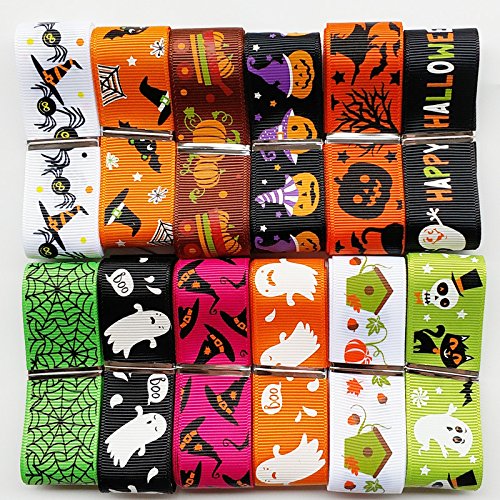 Chenkou Craft 12 Yards 1" 25mm Halloween Grosgrain Ribbon Assorted Wizard Pumpkin Lantern Ghost Spider Skull Castle (1" (25mm) Halloween)