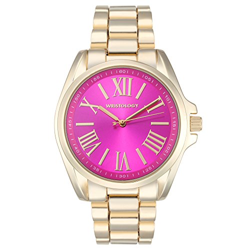 -. Binding : Watch -. Brand : Wristology -. Color : Gold -. Department : Womens -. EAN : 0678358999781 -. Feature : Women's super chunky boyfriend watch with classy roman numerals - the perfect everyday go-to watch / DESIGN - Rachel is a SUPER chunky watch with fun colored face options and classy roman numerals / QUALITY - Our women's boyfriend watches are crafted from quality materials and warranted for 2 years / DIRECT - We only design womens boyfriend watches and sell them direct from our factory to you. / LOVE IT GUARANTEE - If you're not in love with your new chunky women's boyfriend watch, sent it back! -. Label : Wristology -. Manufacturer : Wristology -. Model : RC005 -. MPN : RC005 -. PackageQuantity : 1 -. PartNumber : RC005 -. ProductGroup : Watch -. ProductTypeName : WATCH -. Publisher : Wristology -. Studio : Wristology -. Title : Wristology Women's RC005 Analog Japanese Quartz Rachel Super Chunky Metal Boyfriend Gold with Pink Face Watch -. UPC : 678358999781
